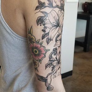 Wherever possible add flowers! They can add balance to a sleeve or stand alone on their own as a single piece. Bright and colourful or not they are one of our favorite subject matters to tattoo.