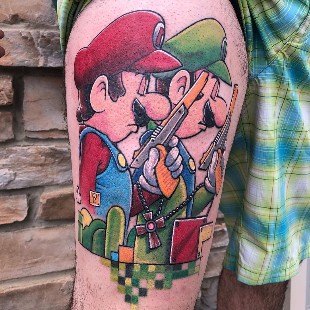 Pop Culture is a very broad style of tattooing. The images can be tattooed as a flat, realistic, cartoon or even abstract tattoo.